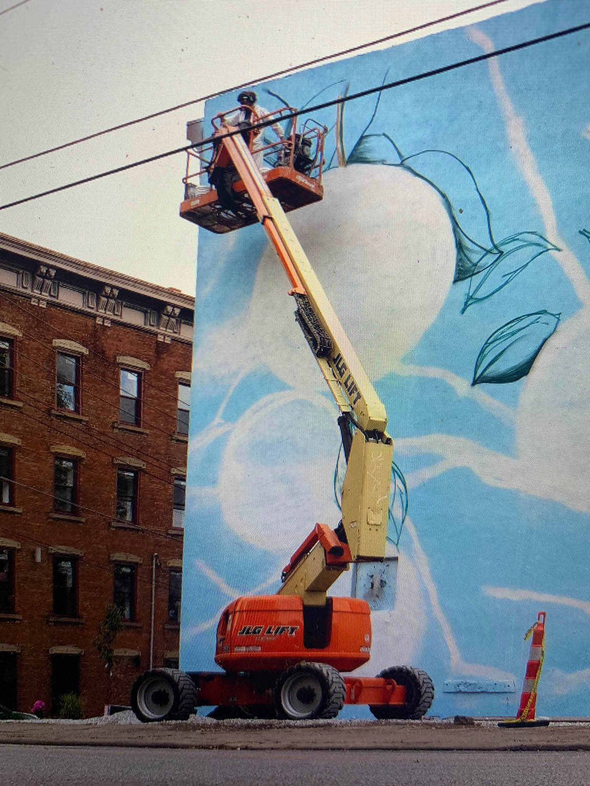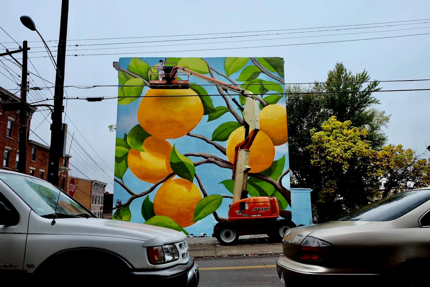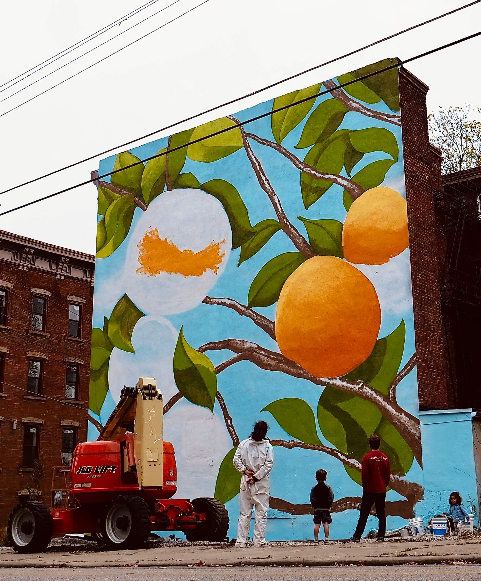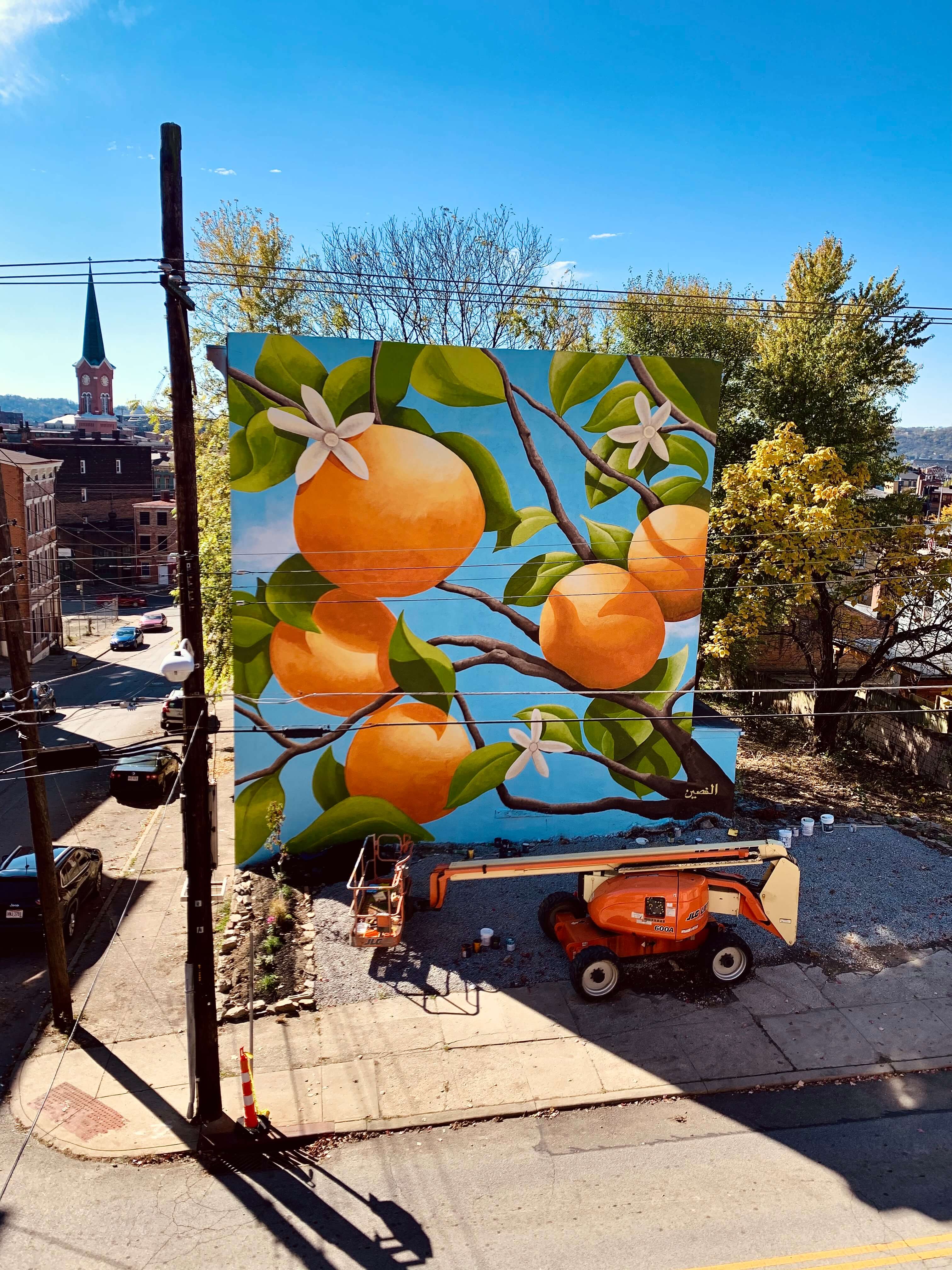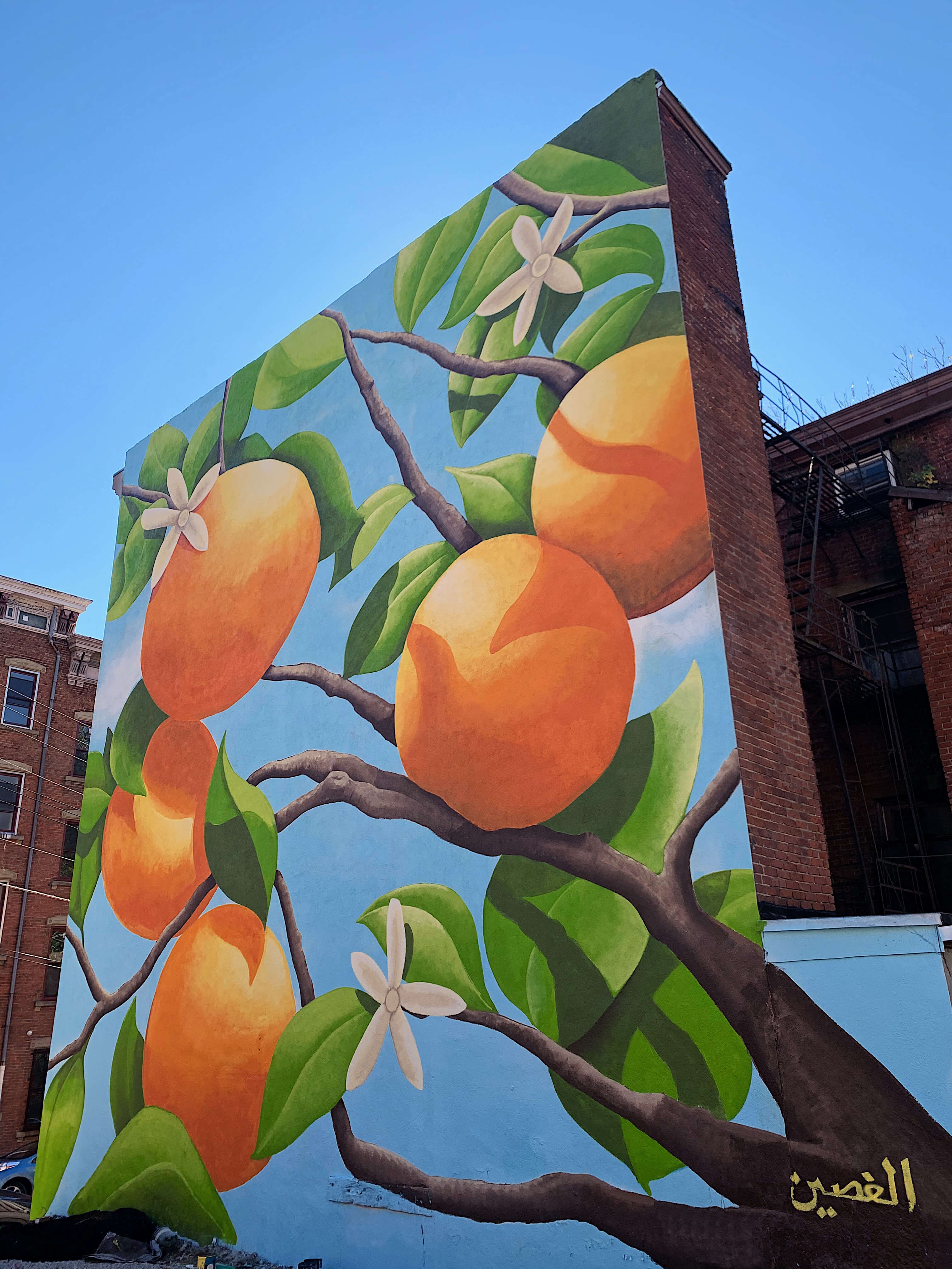 A mural of the famed Palestinian Jaffa Oranges, in Cincinnati, Ohio by Jason Yacoub Khaled Al Ghussein.